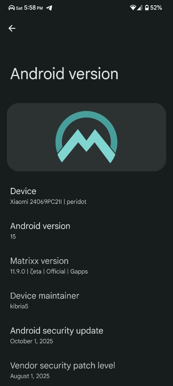 ▪️ Changelogs (https://www.projectmatrixx.org/downloads/peridot)