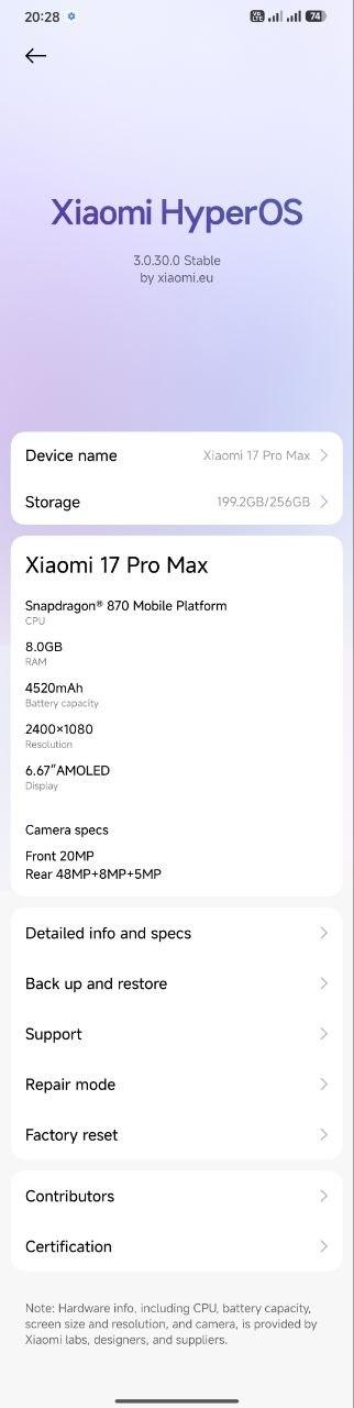 • Devices identifies as Xiaomi 17 ProMax to Google / Xiaomi