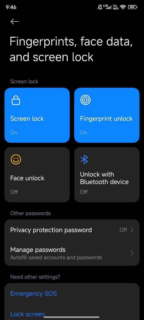 • Face unlock,