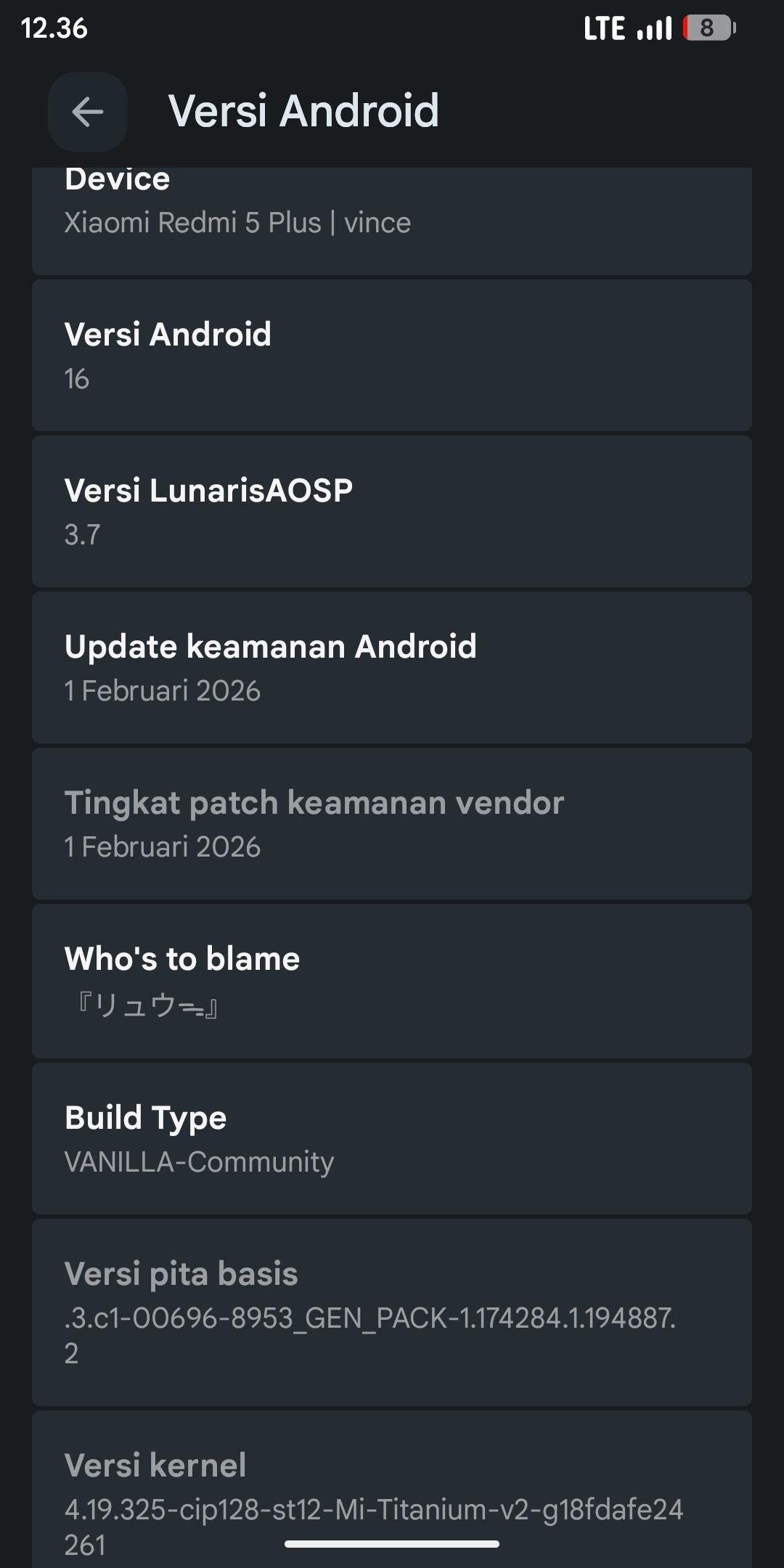 Changelog: Device (https://telegra.ph/Device-Changelog-Infinity-X-Redmi-5-Plus-02-15) | Source (https://t.me/lunaris_dailyUP)