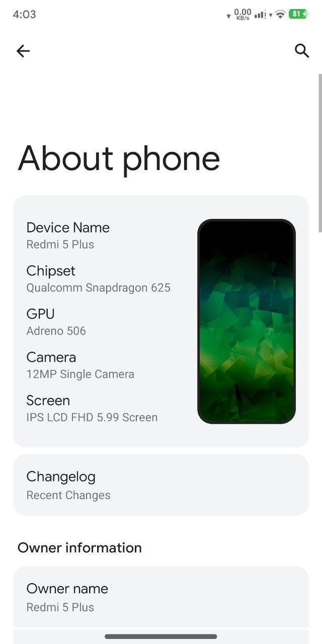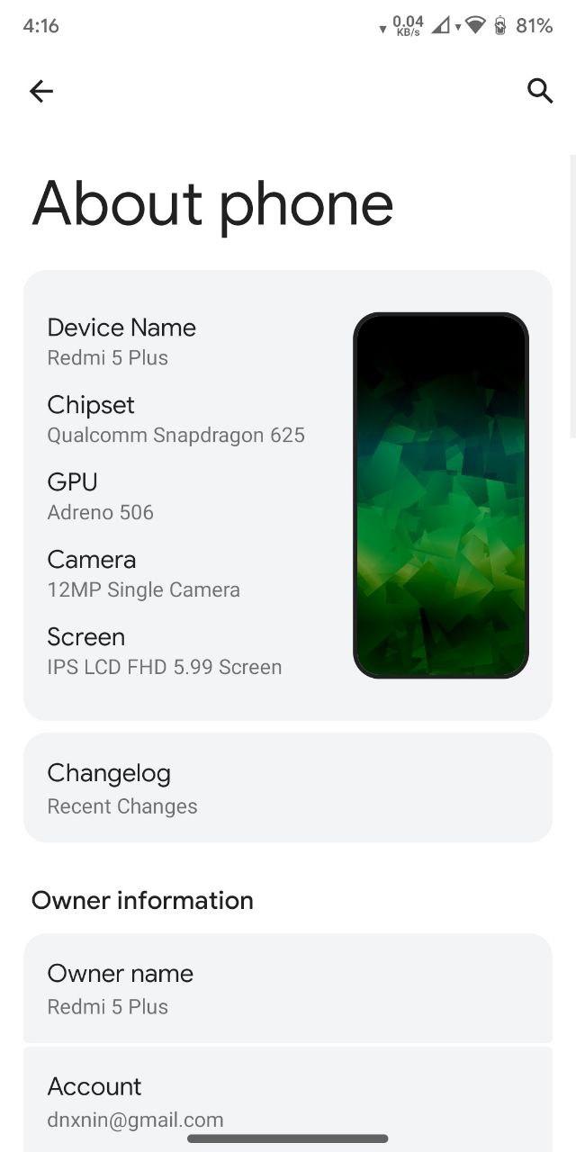Device : Redmi 5 Plus Vince