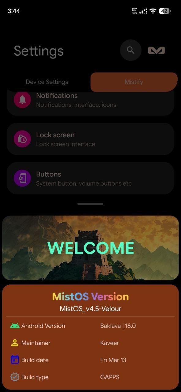 Mist OS v4.5 | Velour | Android 16