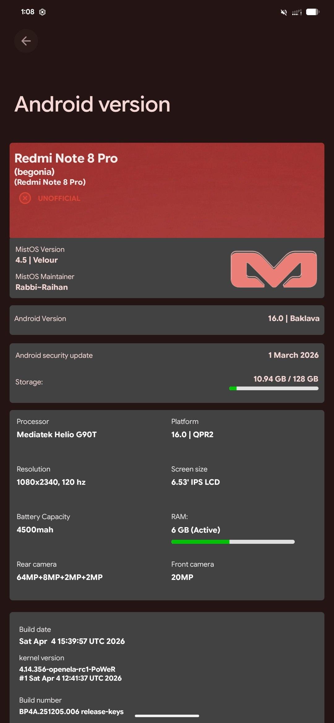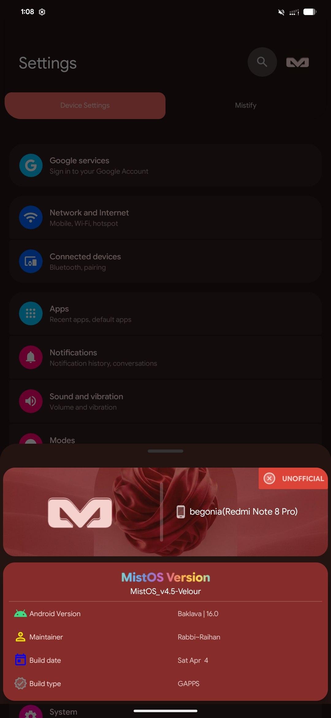 #MistOS #UNOFFICIAL #A16 #Baklava #ROM #Begonia #Dynamic #NonDyamic #QPR2